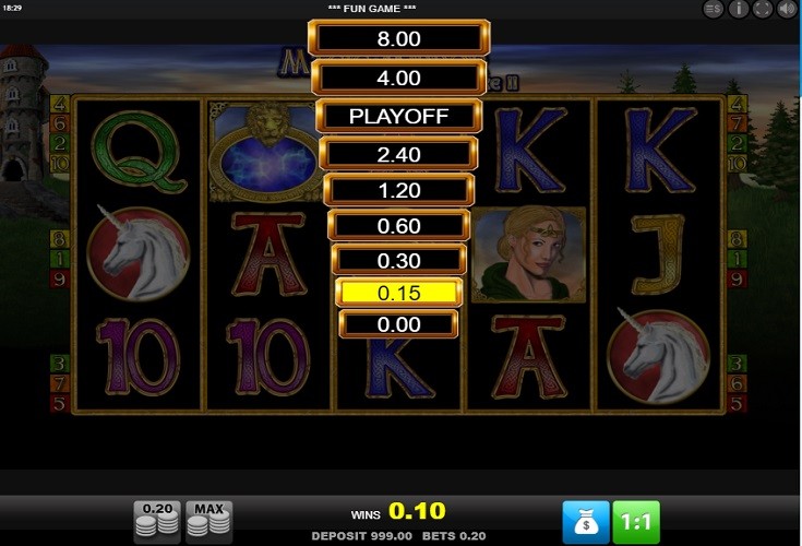 Die geringsten Wertigkeiten im Spiel haben die Buchstaben. A,J,Q,K und die 10. Kleinere Gewinne sind hier bei drei gleichen Symbole auf einer Auszahlungslinie möglich. Das Einhorn, die Sonnenuhr, der magische Spiegel und das Burgfräulein sind die mächtigeren Bilder, die schon bei zwei Übereinstimmungen Umsätze versprechen. Das Höchste was das Einhorn Spielern ausschüttet, ist das 40-fache des Einsatzes, wenn es fünfmal auf einer Payline herbeigezaubert wird. Dasselbe gilt für den Zauberspiegel. Die höchsten Ausschüttungen verspricht das schöne Burgfräulein. Mit Hilfe von dieser können Spieler ihren Einsatz verhundertfachen.